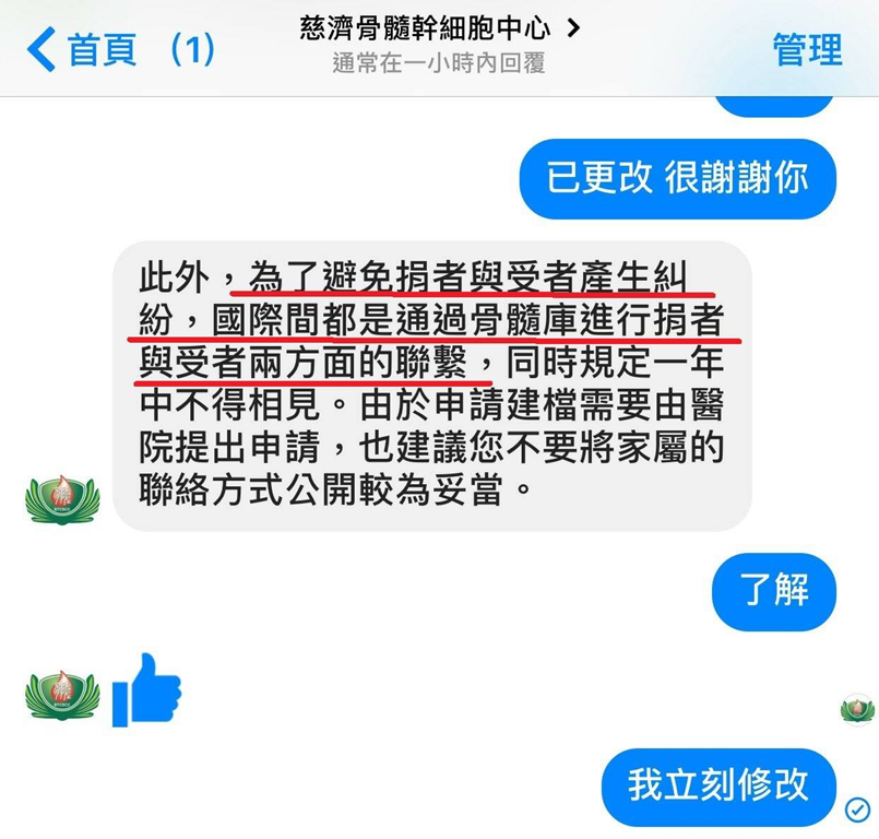 這一點應該一直都有人在跟發文者提醒,但發文者不知為何一直不願意更改。此外,政府目前是讓慈濟進行台灣骨髓幹細胞中心的運作與維護,但是發文者卻一直慫恿大家去其他醫院進行建檔,並希望大家在建檔後與其聯絡。
